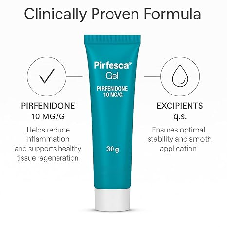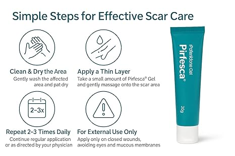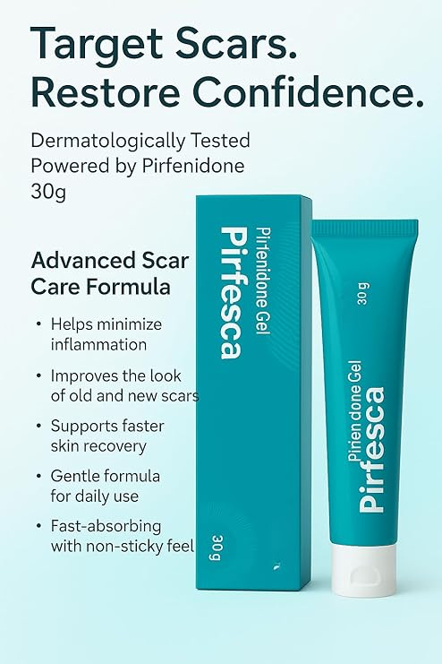 Pirfesca Scar Gel is an advanced dermatological treatment specifically formulated to manage and reduce the appearance of various types of scars, including hypertrophic scars and keloids. Whether resulting from surgical procedures, injuries, burns, or acne, scars can often be a source of physical discomfort and self-consciousness. Pirfesca works by modulating the body’s natural healing process, specifically targeting the overproduction of collagen that leads to raised, discolored, or thickened scar tissue. This specialized gel provides a non-invasive solution to help flatten, soften, and fade scars, restoring the skin’s natural texture and appearance over time.