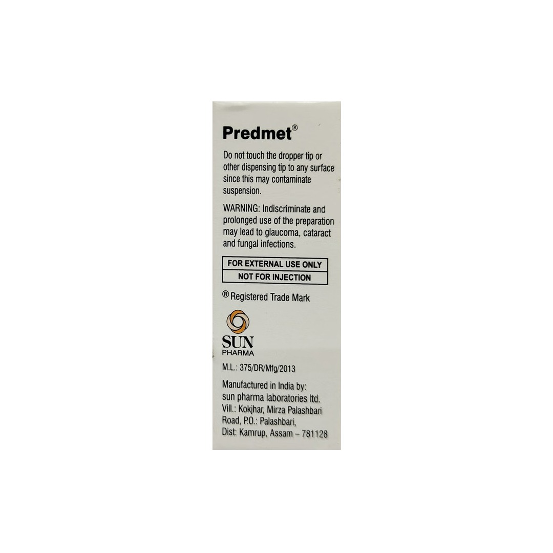 Predmet 1% Eye Drop is a potent corticosteroid ophthalmic solution used to treat inflammatory conditions of the eye. It contains Prednisolone Acetate, which works by suppressing the body’s immune response and reducing the release of substances that cause swelling, pain, and redness. This medication is commonly prescribed following ocular surgeries (such as cataract or LASIK) to manage post-operative inflammation and prevent complications. It is also effective for treating non-infectious inflammatory conditions like uveitis, cyclitis, and allergic conjunctivitis. By calming the eye’s natural inflammatory response, Predmet 1% helps protect delicate ocular tissues and restores comfort and clarity of vision.