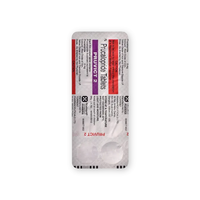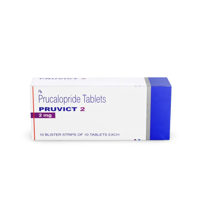 Pruvict 2 Tablet contains prucalopride and is used in the treatment of chronic constipation, particularly in patients who do not get adequate relief from conventional laxatives. It works by stimulating bowel movements and improving intestinal motility, helping ease stool passage and reduce discomfort.