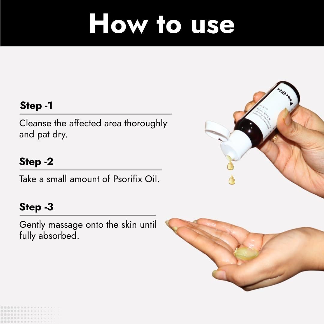 - If using for scalp psoriasis, apply a few drops to the fingertips and massage into the scalp; leave on for 30 minutes before washing with a gentle shampoo.