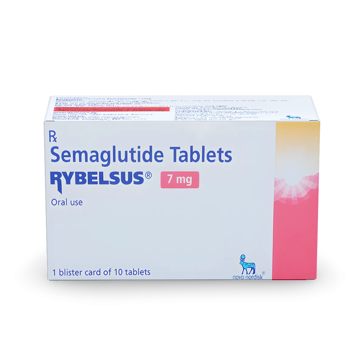 Rybelsus 7mg Tablet is an oral prescription medication used to improve blood sugar control in adults with type 2 diabetes. It contains semaglutide, a GLP-1 receptor agonist that helps stimulate insulin secretion, reduce glucagon release, and slow gastric emptying, supporting better glycemic management along with diet and exercise.