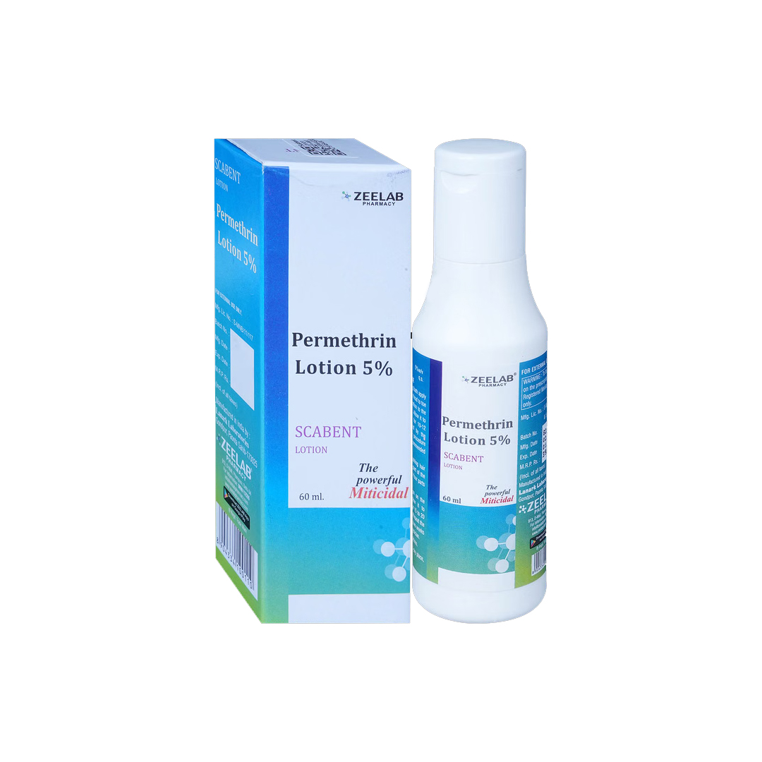 Scabent Lotion is a specialized anti-parasitic topical treatment formulated to eliminate scabies and other skin-borne infestations. Containing the active ingredient Permethrin, it is highly effective at paralyzing and killing the Sarcoptes scabiei mites along with their eggs. This lotion is designed for full-body application, ensuring that the medication reaches even the most hidden areas where mites tend to burrow, such as skin folds and between fingers. By eradicating the source of the infestation, it helps relieve the intense itching, redness, and inflammatory bumps associated with scabies, preventing the further spread of the condition to others. Its easy-to-spread liquid consistency makes it ideal for thorough coverage, providing a reliable and clinically proven solution for household skin parasite management.