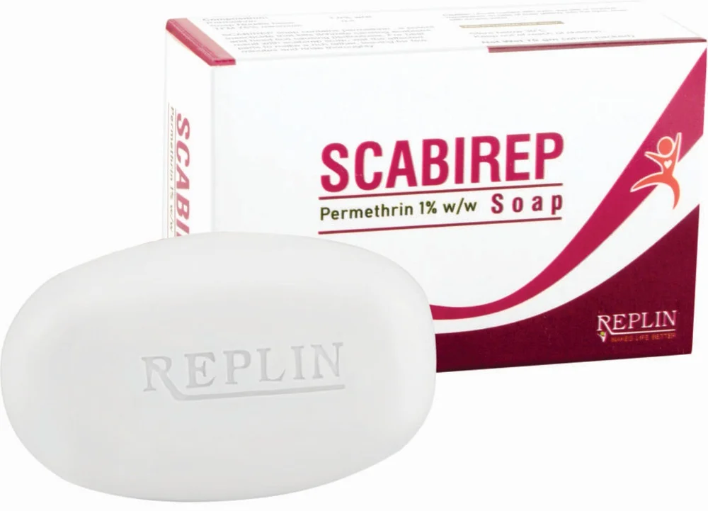 Scabirep Permethrin 1% Soap is a medicated cleansing bar specifically formulated for the effective treatment and management of scabies and body lice. Scabies is a persistent skin infestation caused by tiny mites (Sarcoptes scabiei) that burrow under the skin, leading to intense itching and visible tracks or bumps. Scabirep offers a targeted approach by delivering a clinical concentration of Permethrin directly to the skin’s surface during a regular bathing routine. This soap not only helps in the eradication of the parasites but also ensures deep hygienic cleansing, removing the debris and environmental allergens that can worsen the inflammatory response of the skin.