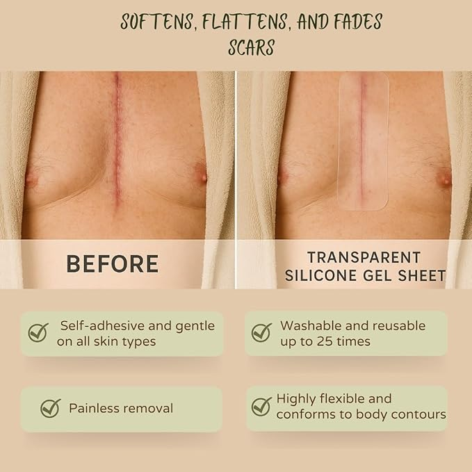 Silicone Gel Sheet helps reduce the appearance of scars from burns, surgeries, and skin grafts. It hydrates and softens skin, promoting even-textured healing.
