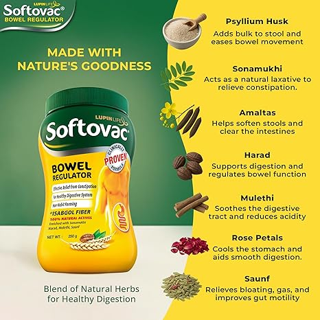 Restore your digestive rhythm with Softovac Bowel Regulator, a time-tested Ayurvedic formula designed to provide gentle yet effective relief from chronic constipation and irregular bowel movements. Digestive health is the foundation of overall well-being, yet modern diets and stressful lifestyles often lead to sluggish digestion and discomfort. Softovac is a 100% natural, non-habit-forming laxative that works in harmony with your body’s internal processes. Unlike harsh chemical stimulants that can cause sudden cramping, this fiber-rich powder helps bulk up the stool and soften its passage, ensuring a smooth and natural evacuation every morning.