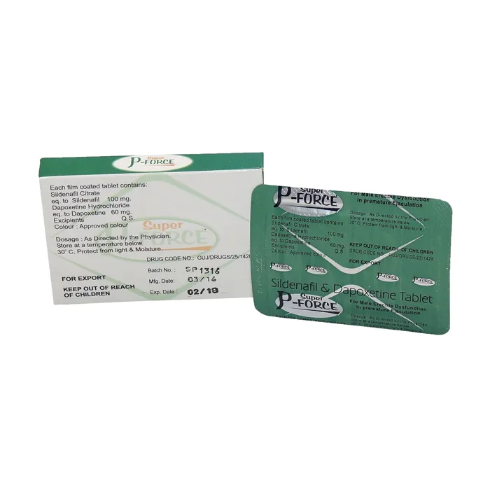 Super P Force is a high-potency hybrid medication specifically engineered to address two of the most common aspects of male sexual health: Erectile Dysfunction (ED) and Premature Ejaculation (PE). This “dual-action” tablet combines two clinically proven active ingredients—Sildenafil Citrate and Dapoxetine—into a single dose. Sildenafil works by increasing blood flow to specific areas to ensure a firm, sustained response, while Dapoxetine, a selective serotonin reuptake inhibitor (SSRI), provides enhanced control over the timing of the experience. The result is a comprehensive solution that restores both confidence and performance harmony.