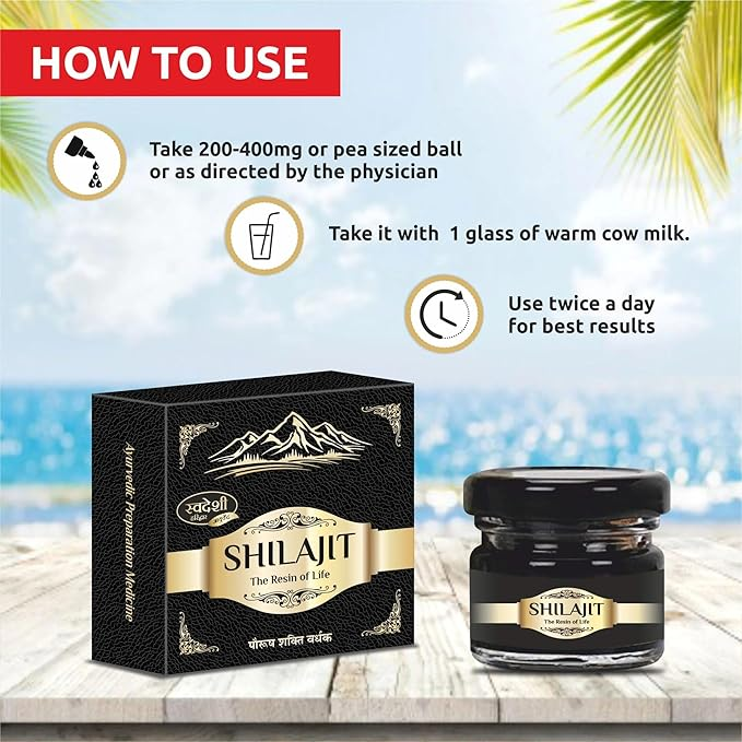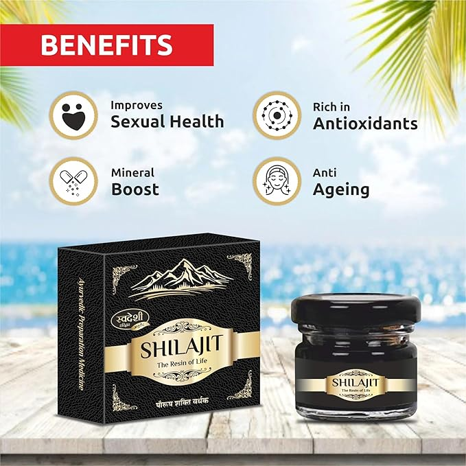 Swadeshi Shudh Shilajit Premium is a potent natural supplement from the Himalayas, packed with over 80 minerals and fulvic acid to enhance energy, immunity, and mental clarity for overall wellness.