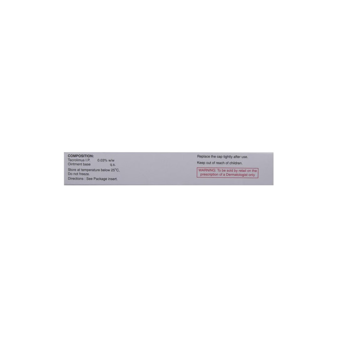 Tacroz 0.03% Ointment is a prescription topical medication used in the treatment of atopic dermatitis (eczema) and other inflammatory skin conditions. It works by suppressing overactive immune responses in the skin, thereby reducing redness, itching, swelling, and discomfort. This ointment is especially useful for sensitive skin areas where steroid use is not recommended.