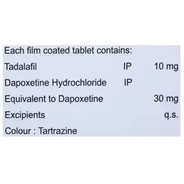 Tadafil D Tablet is used to manage erectile dysfunction (ED) in men. It combines Tadalafil with Dapoxetine to improve erectile function and help delay ejaculation. This medication should be taken under medical supervision and as prescribed by a doctor.