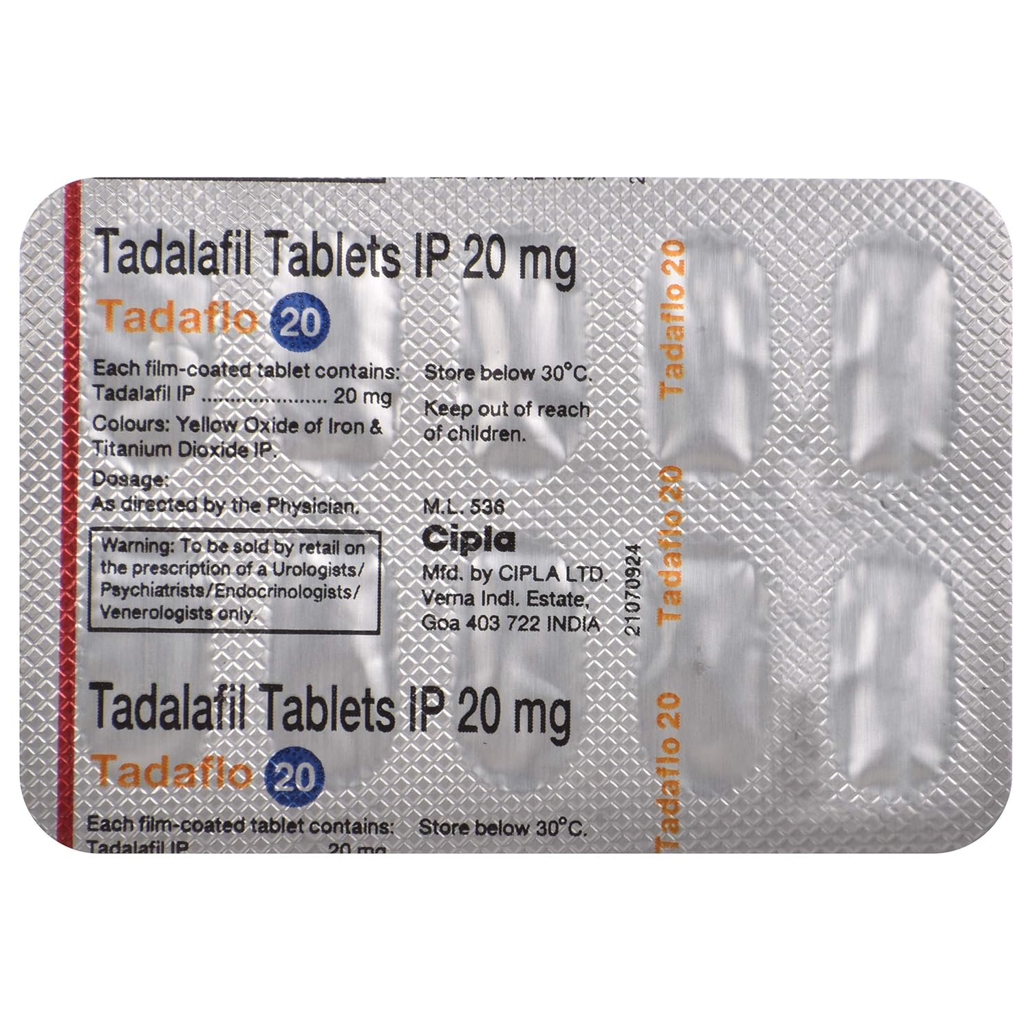 • Take one Tadaflo 20mg tablet at least 30 to 60 minutes before you anticipate physical activity.