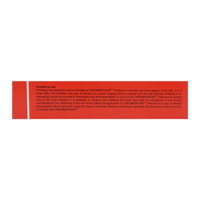 Thrombophob Ointment is a topical medication used to help relieve pain, swelling, and inflammation associated with superficial thrombophlebitis, varicose veins, bruises, and soft tissue injuries. It contains Heparin and other supportive ingredients that help improve blood circulation in the affected area and promote faster healing when used as directed by a healthcare professional.