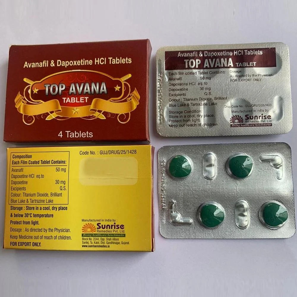 Top Avana Tablets are used to manage erectile dysfunction (ED) in men. They contain avanafil, a phosphodiesterase type 5 (PDE5) inhibitor that helps increase blood flow to the penis, improving the ability to achieve and maintain an erection during sexual stimulation.