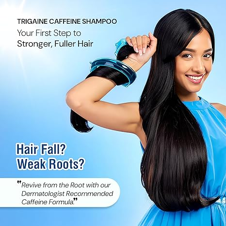 Revitalize your hair with Trigaine Caffeine Anti Hair Fall Shampoo. Designed to boost scalp health, energize roots, and reduce breakage for stronger and thicker-looking hair.
