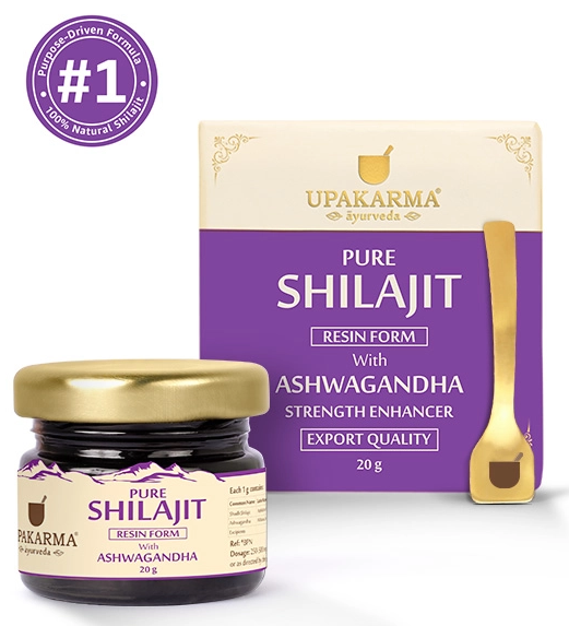 Upakarma Shilajit Resin with Ashwagandha combines potent Ayurvedic ingredients to help enhance energy, stamina, and overall vitality naturally for an active, balanced lifestyle.