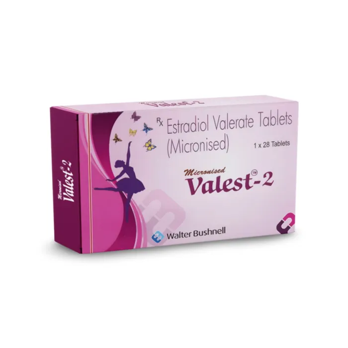 Valest 2 is an advanced hormonal medication containing 2 mg of Estradiol Valerate, a synthetic ester of the naturally occurring female sex hormone, estrogen. It is widely utilized in Hormone Replacement Therapy (HRT) to alleviate distressing symptoms of menopause, such as intense hot flashes, night sweats, and mood swings. Valest 2 is also crucial for postmenopausal women at risk of osteoporosis, as it helps maintain bone mineral density. Beyond menopause, it is prescribed for primary ovarian failure or female hypogonadism, ensuring that the body receives the essential estrogen required for healthy physiological function and metabolic balance.