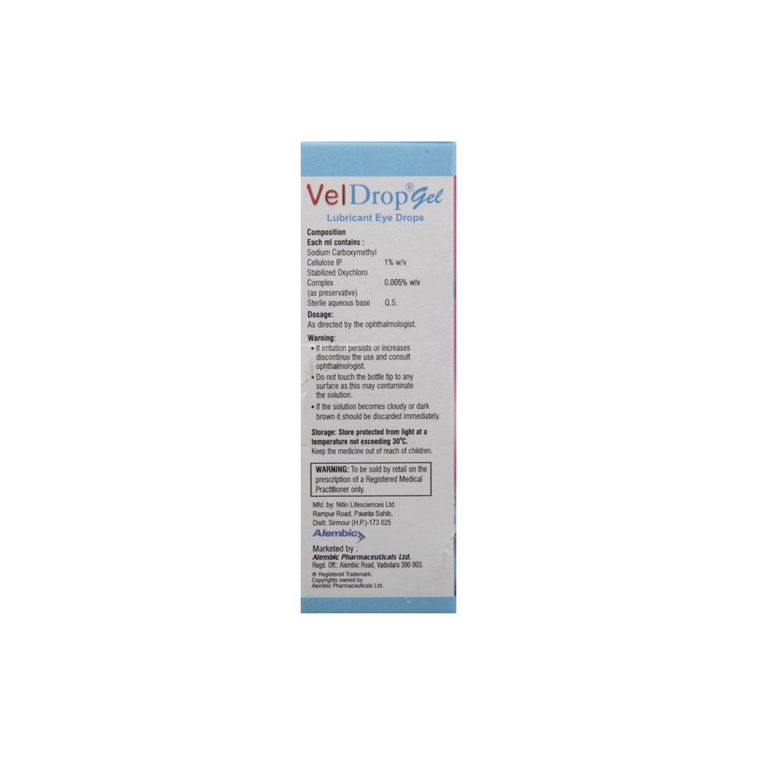Veldrop Gel is a high-viscosity lubricating eye drop designed to provide long-lasting relief from severe dry eye symptoms. It contains Carboxymethylcellulose (CMC), a potent lubricant that mimics the natural behavior of human tears. Unlike standard liquid drops, this gel formulation has a thicker consistency that clings to the ocular surface for an extended period, creating a protective, hydrating shield over the cornea. It is specifically used to treat dryness, burning, and irritation caused by environmental factors, prolonged screen use, or certain medical conditions. By stabilizing the tear film and preventing rapid evaporation, Veldrop Gel restores moisture and ensures sustained comfort, especially for users who find frequent liquid drops insufficient.