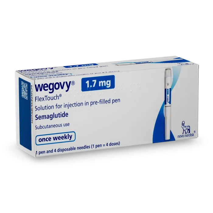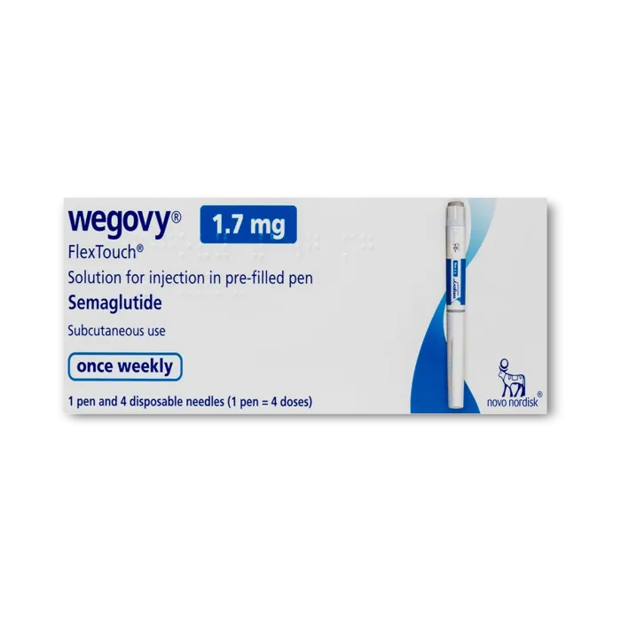 Wegovy 1.7 mg is a high-strength, prescription injectable medication containing Semaglutide, designed for chronic weight management. As a GLP-1 receptor agonist, it mimics the natural hormone that regulates appetite and caloric intake. The 1.7 mg dose serves as the final step in the dose-escalation protocol before reaching the maximum maintenance dose. It works by slowing gastric emptying and signaling the brain to feel full sooner and for longer periods. This helps adults with obesity (BMI ≥30) or overweight (BMI ≥27) with weight-related health conditions to achieve significant, sustainable weight reduction when paired with a reduced-calorie meal plan and increased physical activity.