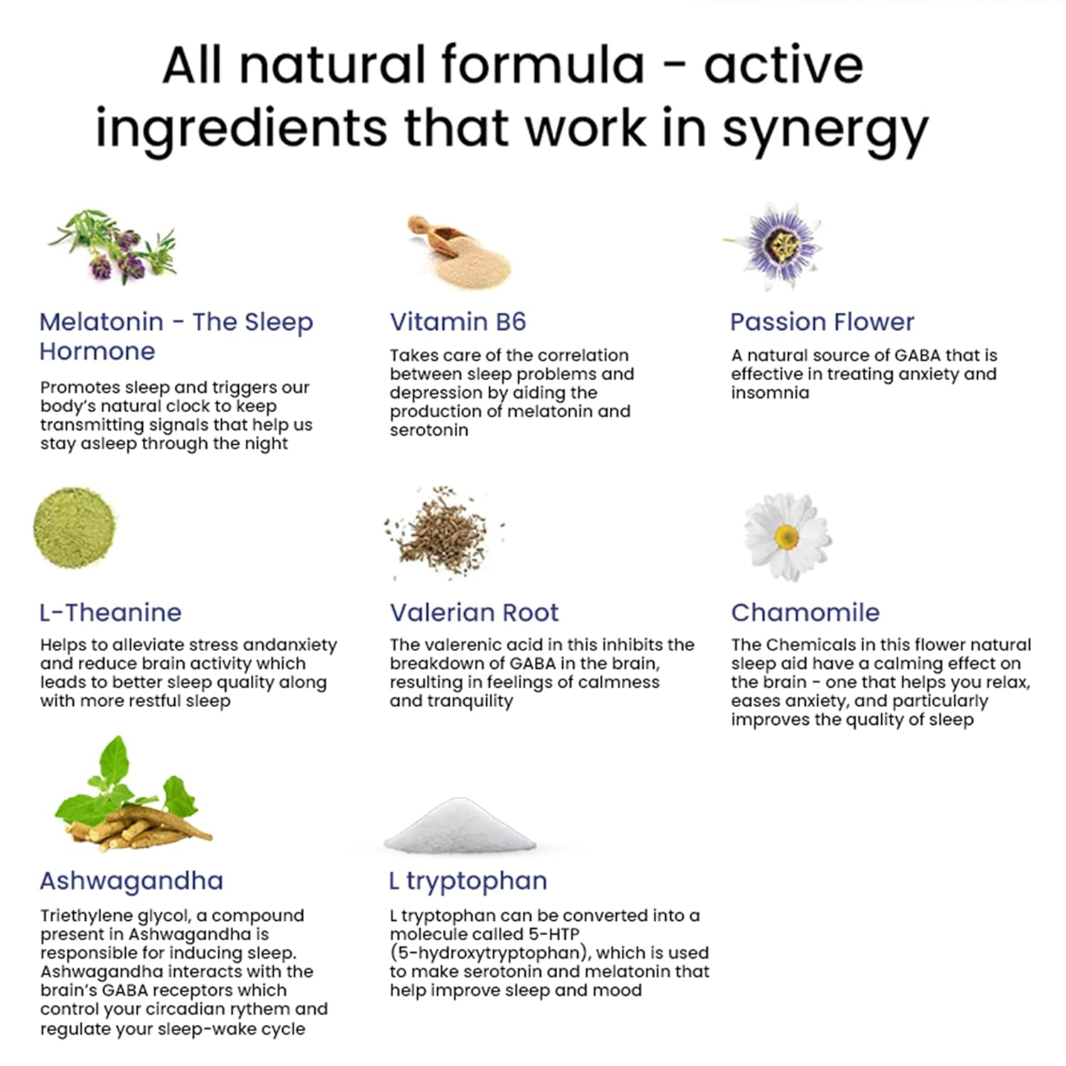 • Uses plant-based Melatonin to signal the brain that it is time to sleep.